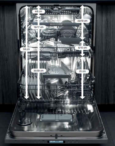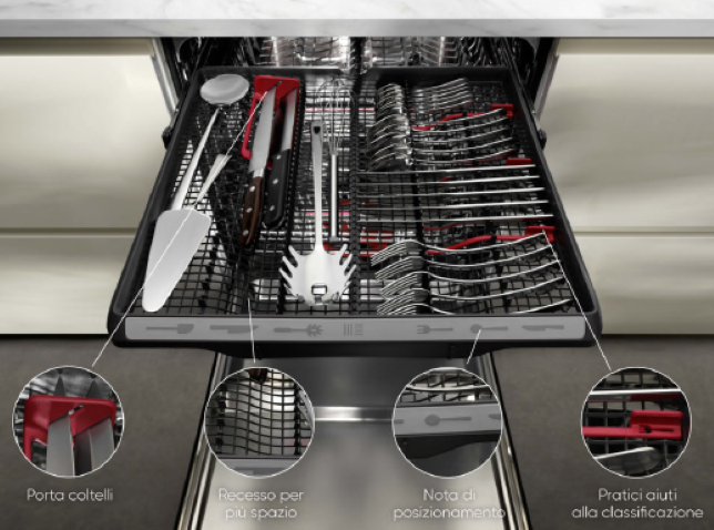 Lavastoviglie super spaziose con l’aggiunta di nuovi cestelli superiori e centrali garantisce una capacità di 17 coperti